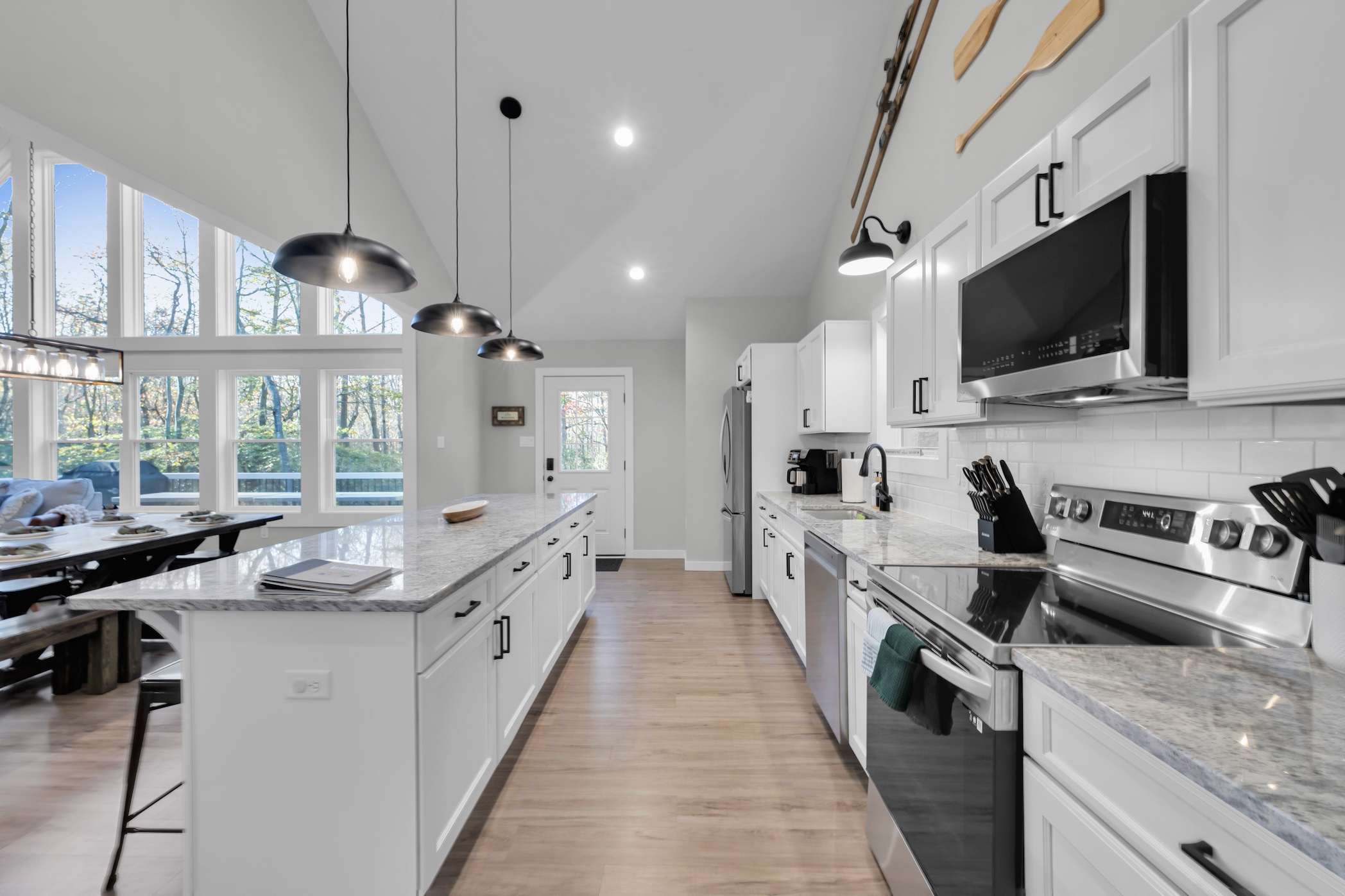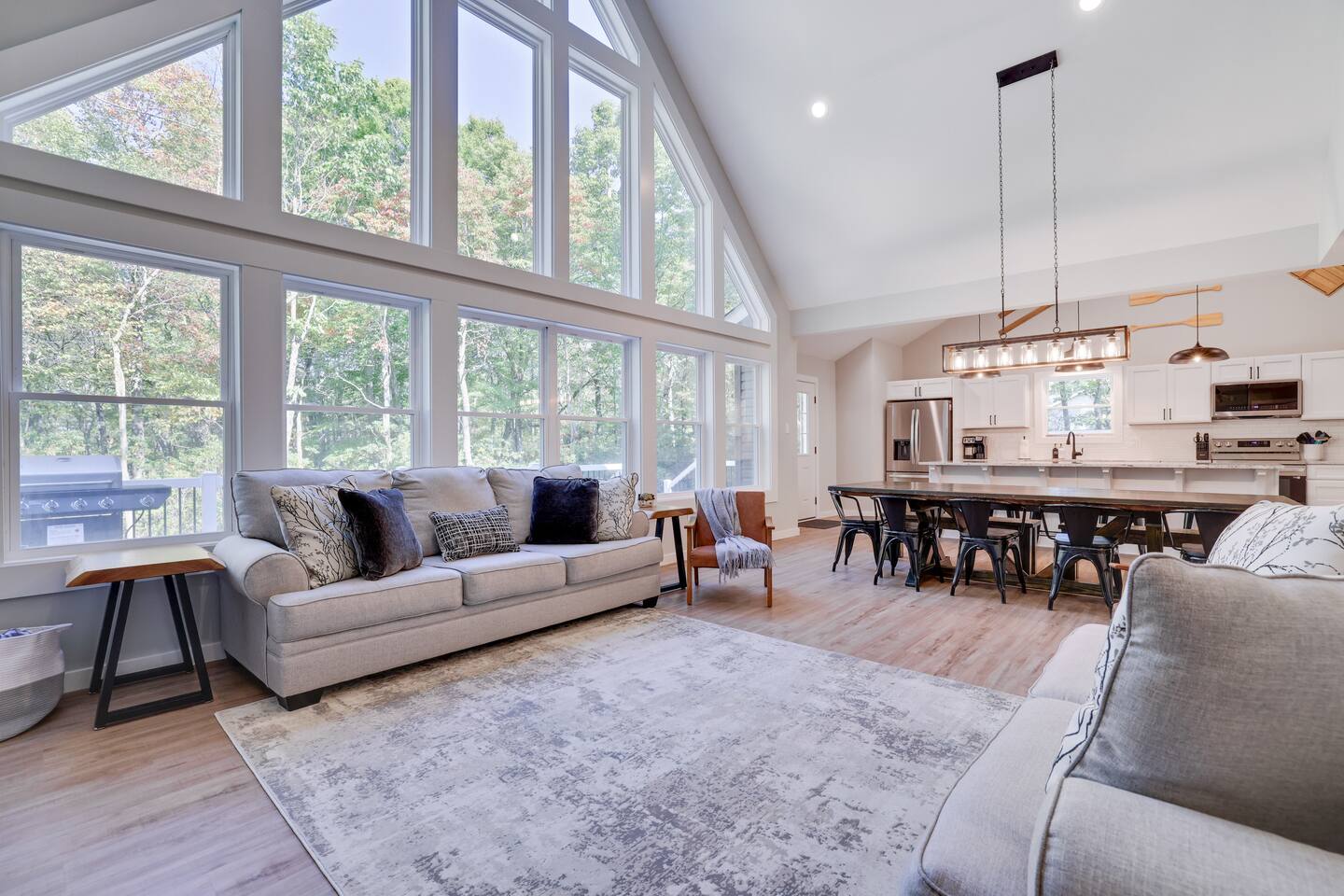 Starter kit of essentials included with your stay: - Toilet paper - Paper towels - Hand soap - Dish soap - Sponge - Trash bags - Dishwasher pods - Laundry pods - Coffee - Spices Depending on the length of your stay, additional items may need to be purchased separately. The Sonos speakers have an automatic volume limit that goes into effect at 8pm and lowers further again at 10pm. Guests are responsible for inspecting consumables found in the house before using (coffee, spices, condiments, etc.). The host is not responsible for any illness or negative effects from these items. *Inclement weather* The Pocono mountains are subject to extreme weather (snow, ice, rain, etc). Guests are responsible for understanding the cancellation policy prior to booking and consider trip insurance to cover interruptions. In winter, we recommend a 4WD vehicle with snow tires. Our snow removal service will treat the driveway following snow storms of 3+ inches, however we cannot guarantee treatment for the surrounding roads. Lastly, we have a backup generator at the property to ensure guests have power and running water for a limited time following an outage.