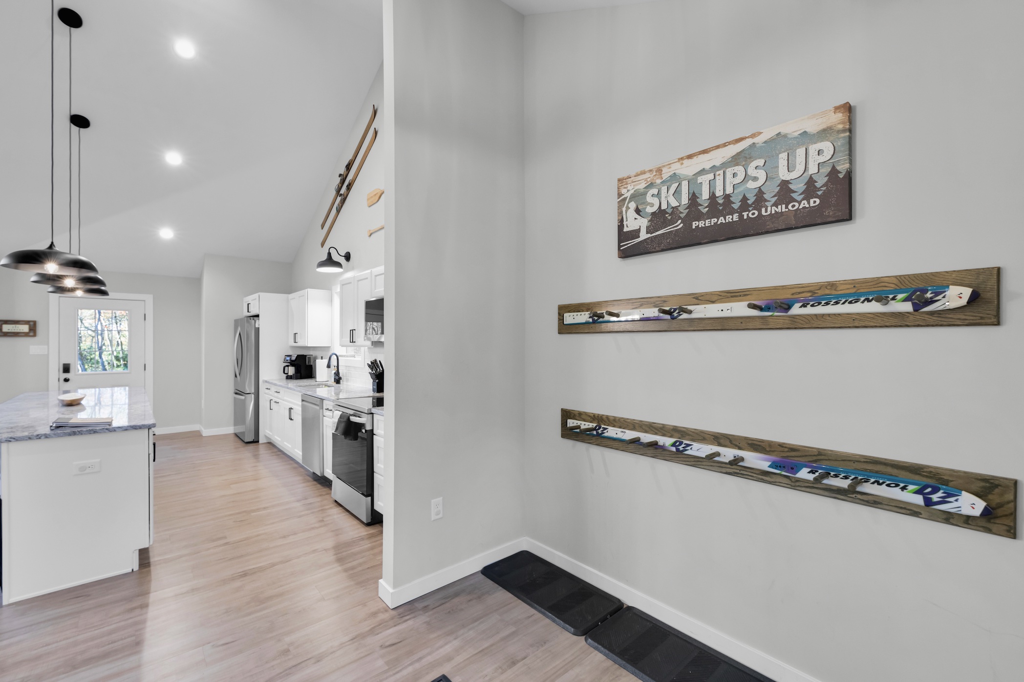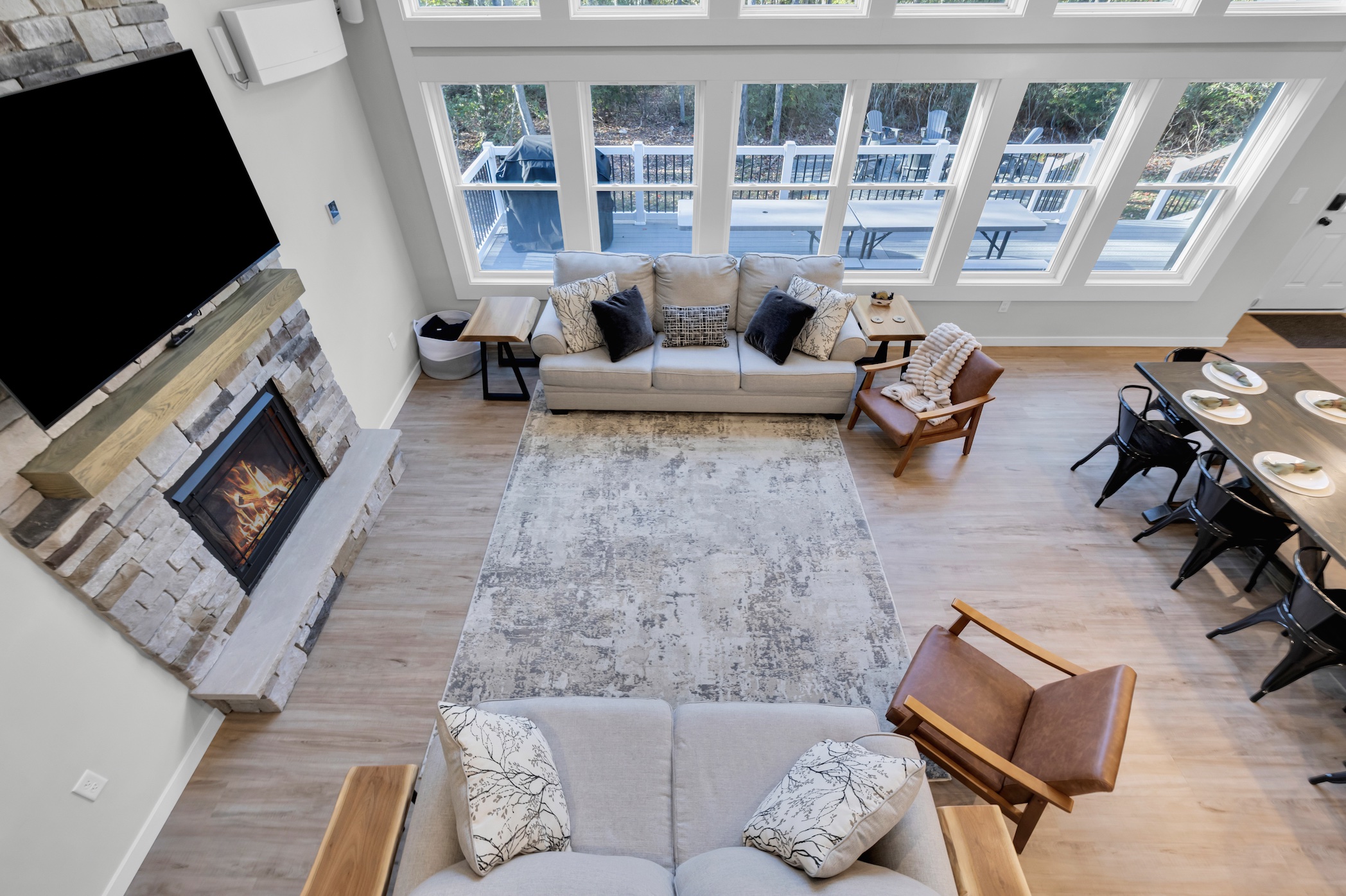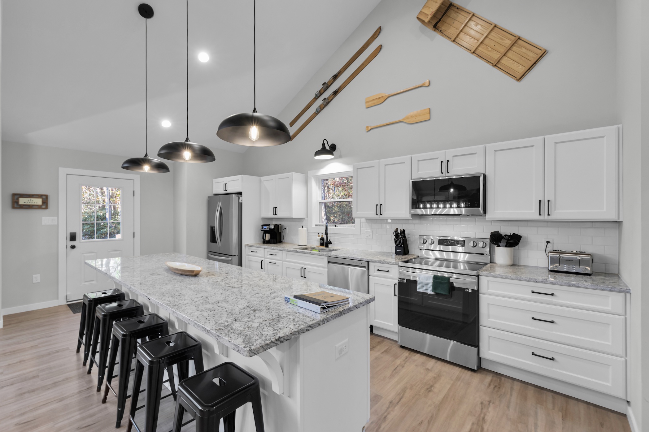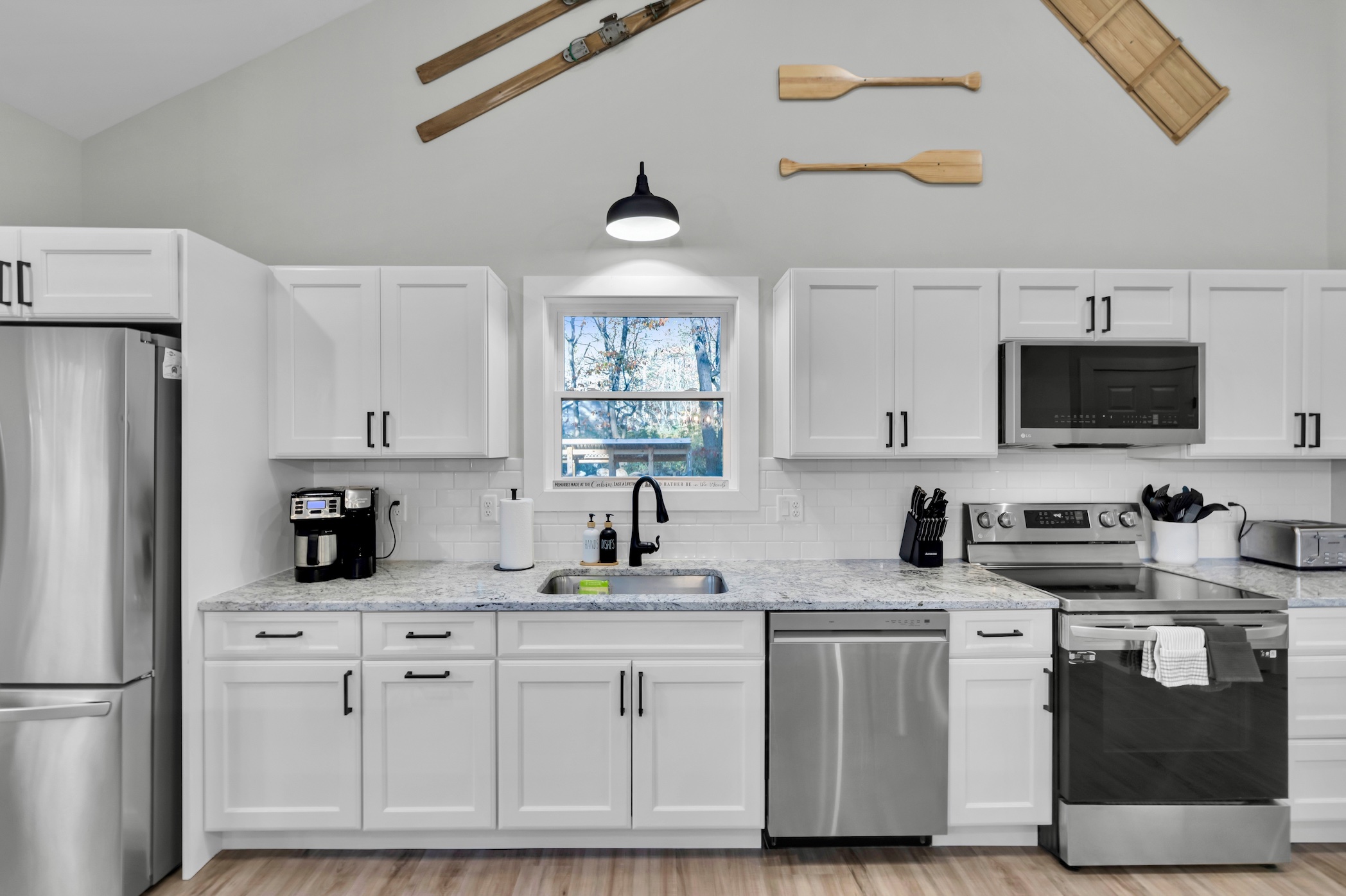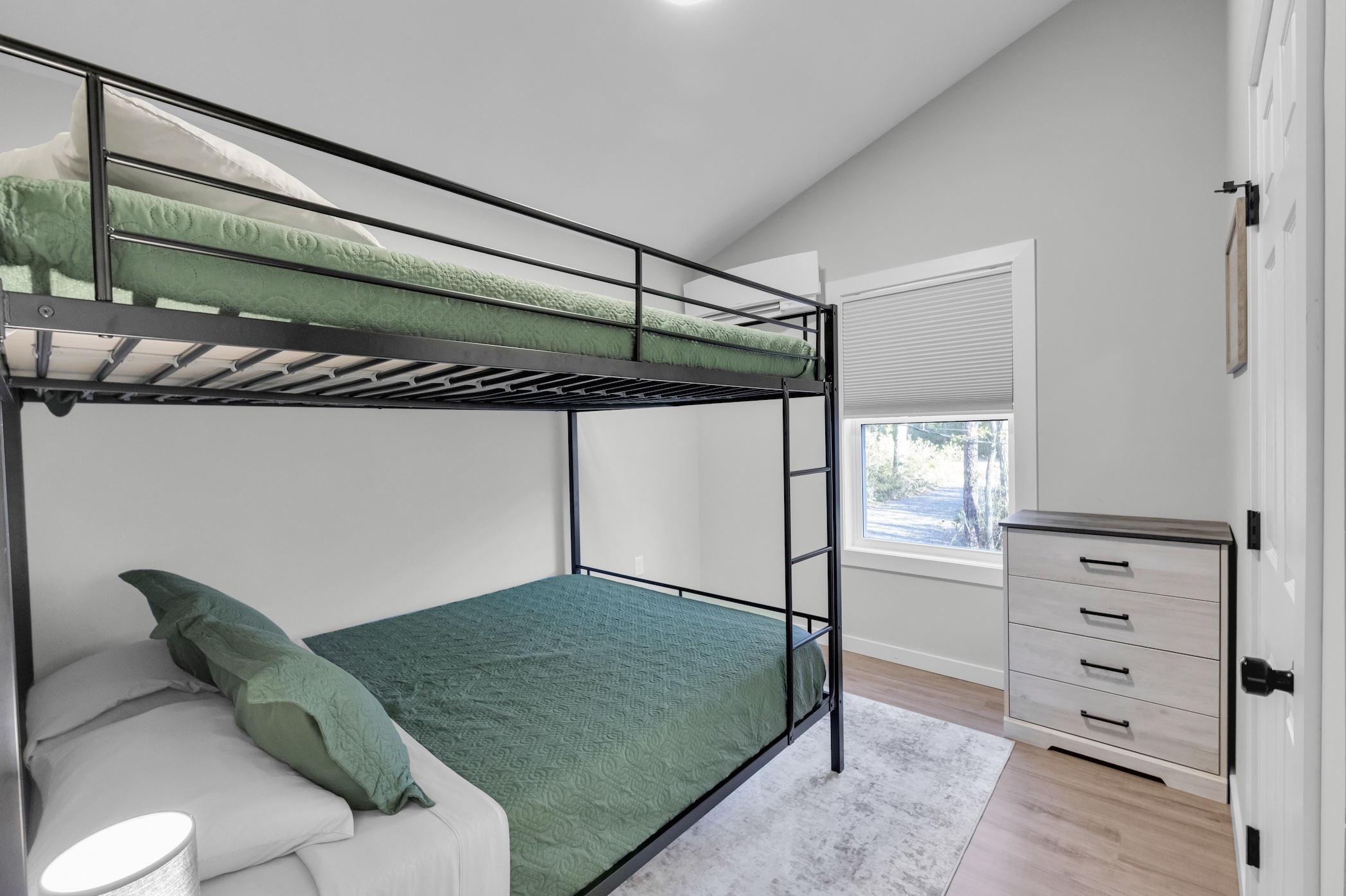 1,800 sq ft chalet style home on a wooded 1-acre lot 4 Bedrooms - 3 King beds - 1 Queen over queen Bunk - Pack and Play (x3) for kids (crib sheets not provided) - Linens included for all beds 2 Full Bathrooms - Walk in shower - Tub shower - Total of 12 bath towels, 4 hand towels, 4 wash cloths, 2 makeup towels Kitchen - Dining room table with seating for 10 - 10ft island with 5 barstools - Surplus of hand towels and pot holders - All essential pots, pans, cooking sheets, and utensils Entertainment: - Roku smart TVs in great room + loft - Sonos sound system - High speed internet (300+ Mbps) - Acoustic guitar - Board games Exterior: - Outdoor patio with picnic tables - Sonos sound system - Gas grill (propane included) - Children's swing set (new!) - Fire pit with chairs - Firewood available for purchase - S'more sticks - Parking for up to 8 vehicles Beach Essentials - 2 adult and 2 kid life jackets - Beach cabana - 4 beach chairs - Boogie board - 10 beach towels Comfort: - Mini-split heating and air conditioning - Ceiling fan in great room - Gas fireplace in great room - Plenty of blankets Safety: - Exterior security cameras and recording devices around the property - Noise decibel monitor in great room - 2 Fire extinguishers - First aid kit - Smoke and CO alarms